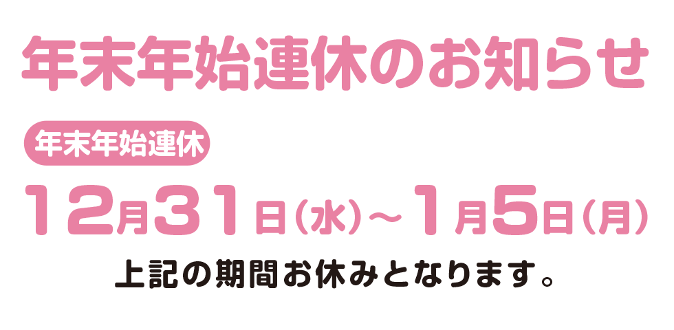 みくまりどうぶつ病院では、12月31日〜1月5日の期間、年末年始連休をいただきます。